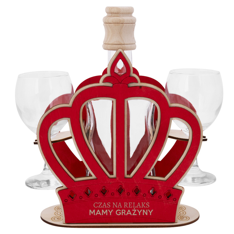 Karafka w koronie czerwona z 2 kieliszkami z grawerem na Dzień Matki