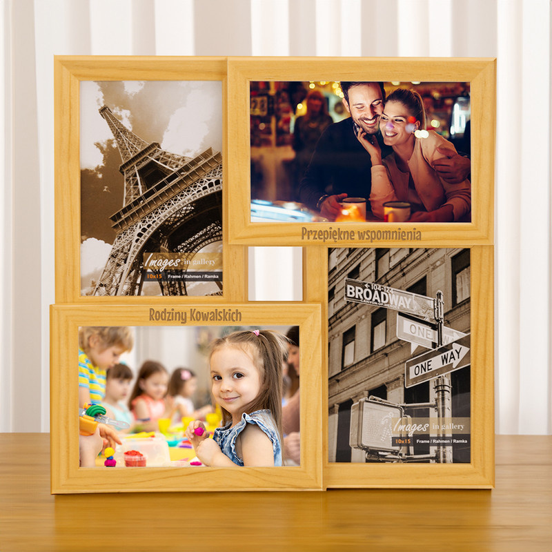 Drewniana multi ramka na 4 zdjęcia z grawerunkiem laserowym