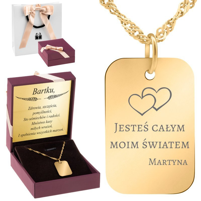 Pozłacana zawieszka pr.925 z łańcuszkiem Dedykacją