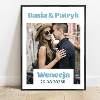 Personalizowany Plakat ze Zdjęciem Pary – Wspomnienie z Podróży | 40x30 cm | Ramka Czarna