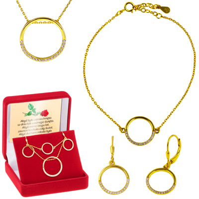 Srebrny Komplet 3 elementy pr 925 Okrąg z cyrkoniami Dedykacja