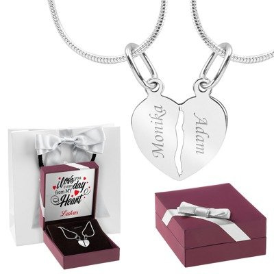 Srebrna zawieszka 925 Serce łamane dla par + łańcuszki z Grawerem