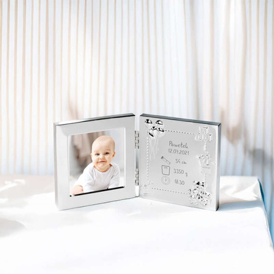 Posrebrzana Ramka Zdjęcie Składana Chrzest Grawer