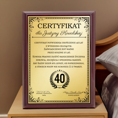 Dyplom na urodziny / Drewniany panel, złota tabliczka, dedykacja / Prezent na urodziny