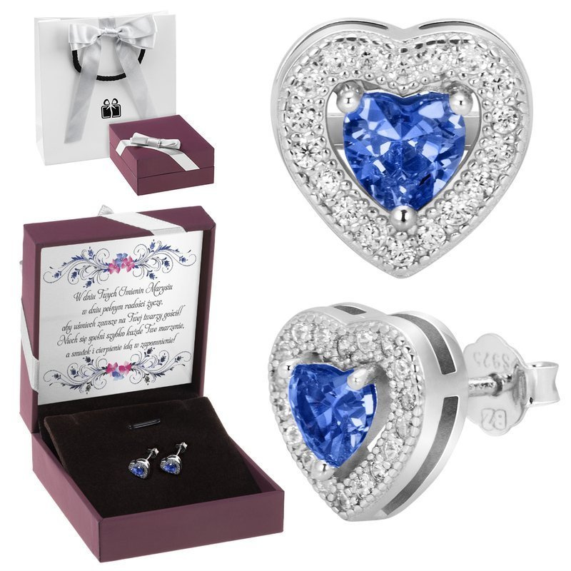 Srebrne Kolczyki 925 Serca Z Cyrkonią Dedykacja