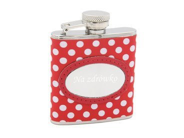 Piersiówka czerwona w białe kropki 2,5oz Urodziny Prezent GRAWER