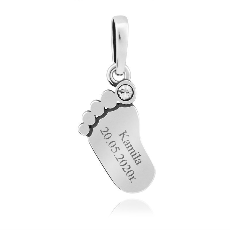Zawieszka stópka z białą cyrkonią srebro 925 Grawer
