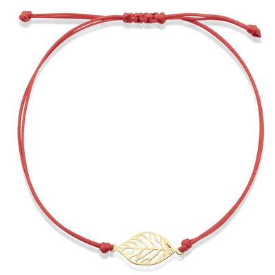 Czerwona sznurkowa bransoletka z listkiem ze złota 585 regulowana