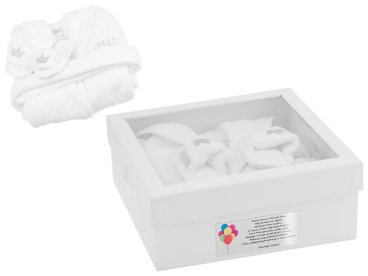 Giftbox szary gryzak i przytulanka Chrzest Roczek Kaczuszka