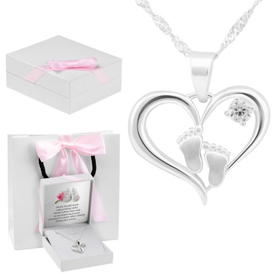 Naszyjnik Stópki w Sercu Srebro 925 Dedykacja