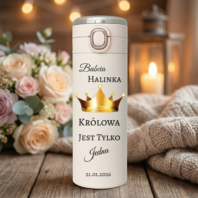 Kubek termiczny dla Babci „Królowa jest tylko jedna” z imieniem i datą