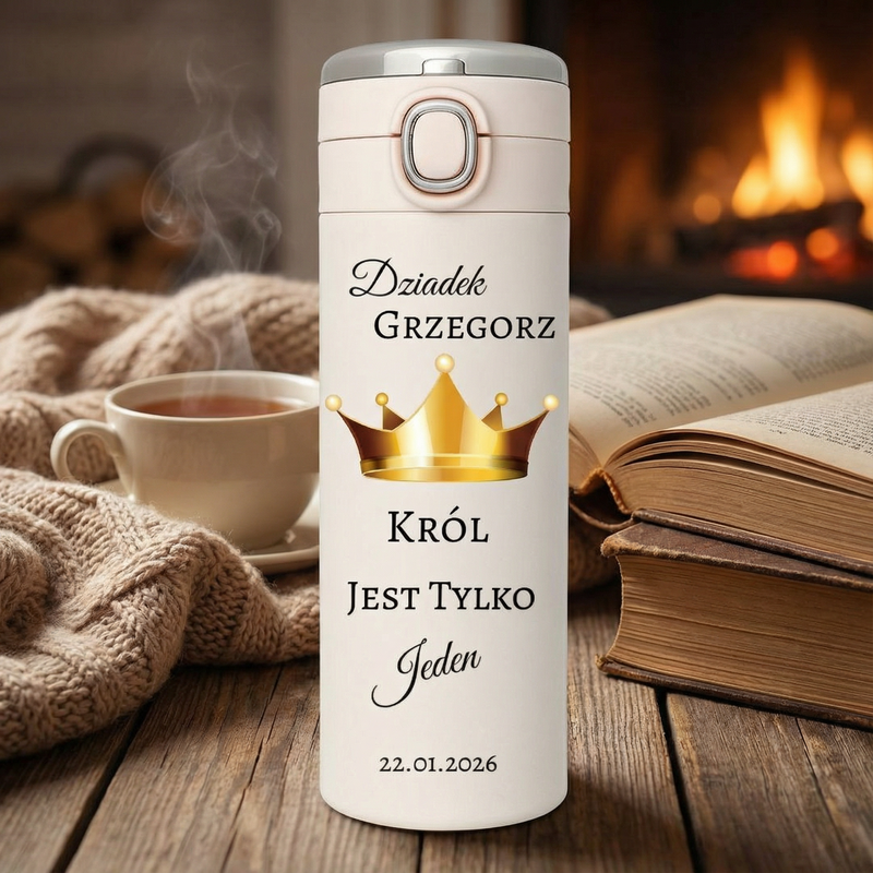 Kubek termiczny dla Dziadka „Król jest tylko jeden” z imieniem i datą
