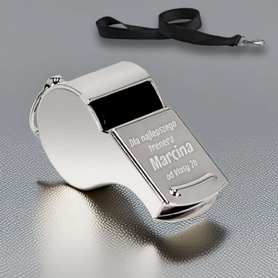 Gwizdek kulkowy / Gwizdek z grawerem / Gwizdek + smycz / Metalowy / Prezent dla trenera / Prezent dla nauczyciela