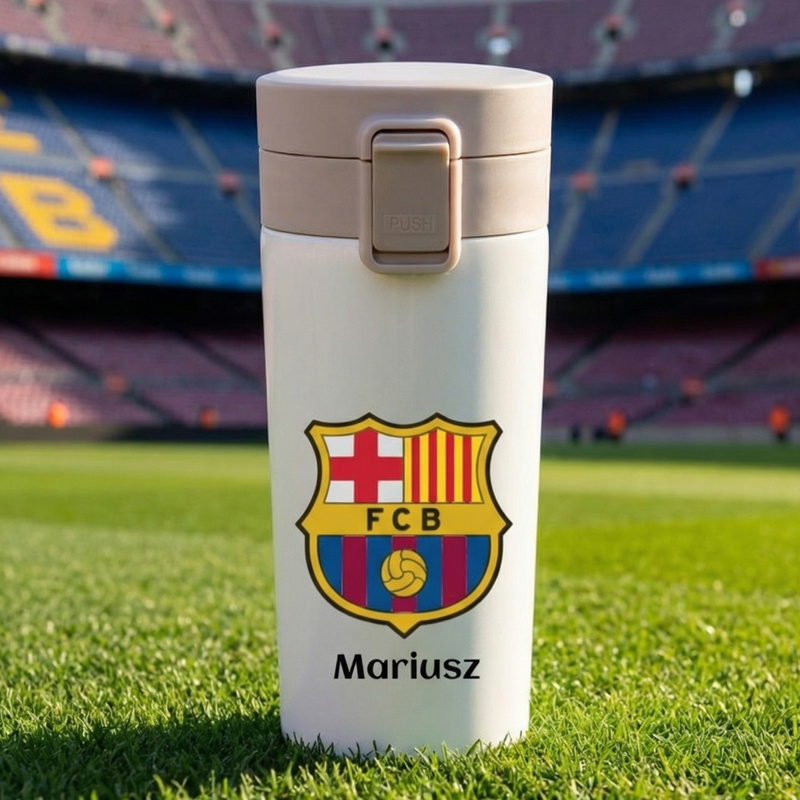 Personalizowany kubek termiczny FC Barcelona 350 ml z imieniem – dla kibica