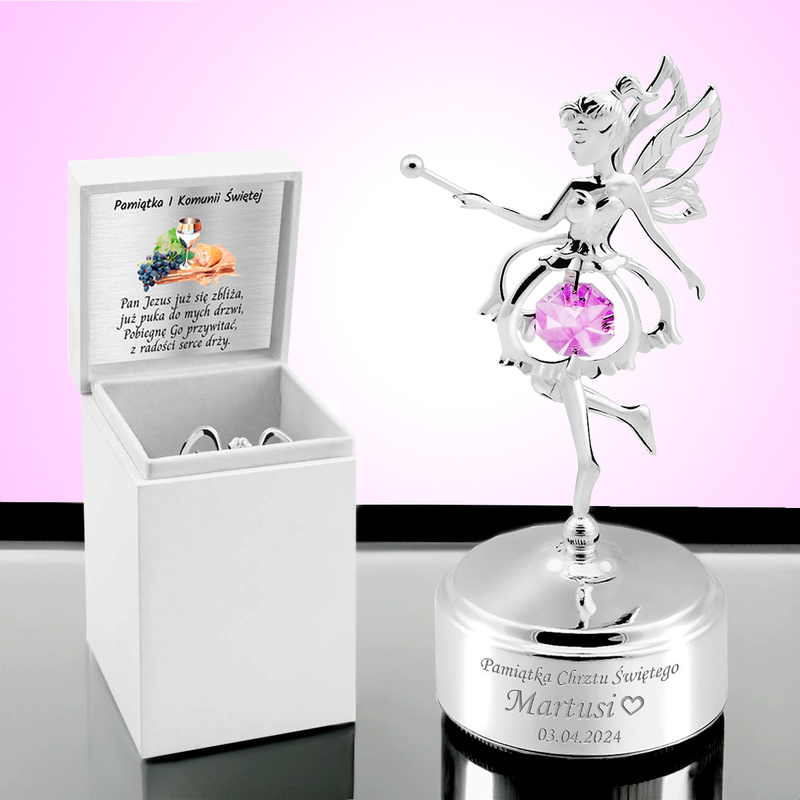 Pozytywka Dziewczynka Elf posrebrzana z grawerem na Chrzest