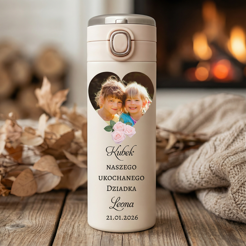 Personalizowany kubek termiczny dla Dziadka ze zdjęciem i LED