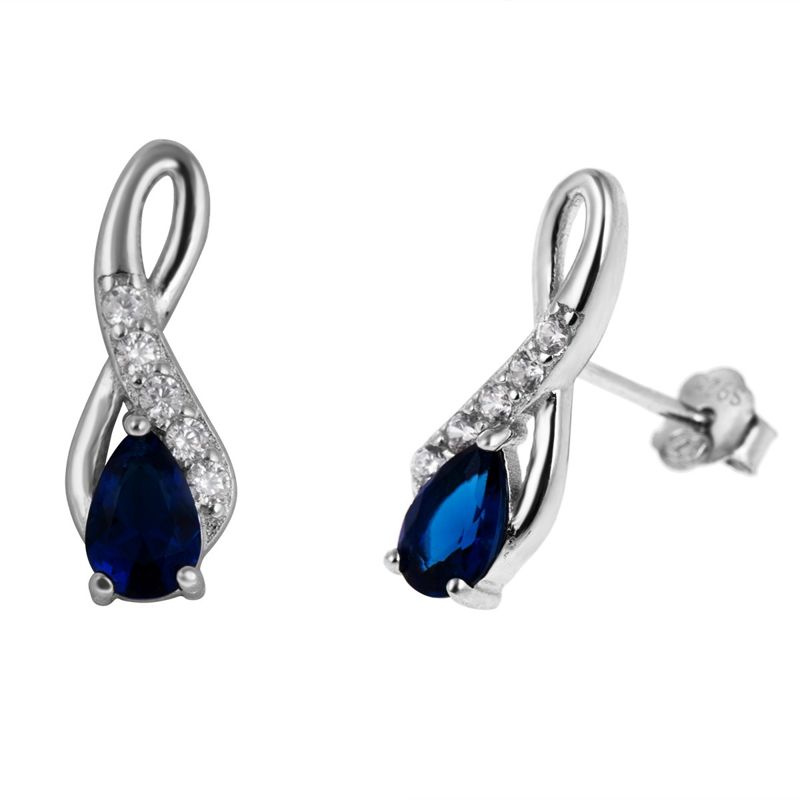 Kolczyki łezka srebro 925 szafirowe i białe cyrkonie