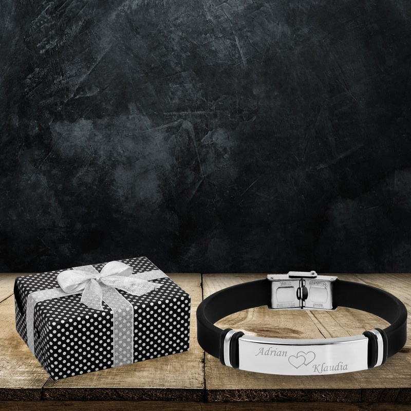Czarna bransoletka ekoskóra / Bransoletka męska / Własny Grawer / Prezent na Urodziny