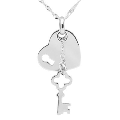 Walentynki: Srebrny wisiorek serce z kluczykiem, pr. 925 prezent