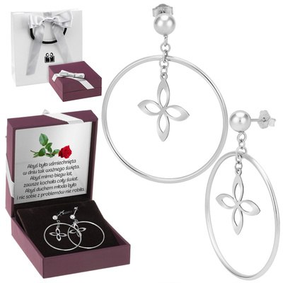 Srebrne kolczyki koła z kwiatkiem - dedykacja w pudełku / prezent na Walentynki, Dzień Kobiet, rocznicę / pr. 925