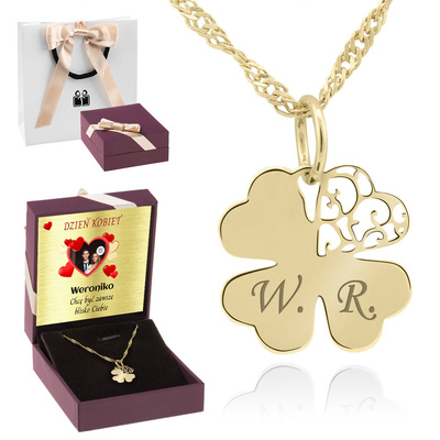 Pozłacany naszyjnik srebro 925: koniczynka, serce i kółko