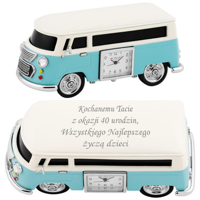 Zegar Camper Van Ogórek Niebieski prezent na urodziny imieniny z Grawerem