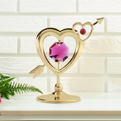 Figurka pozłacane serce z różowym kryształem Dedykacja