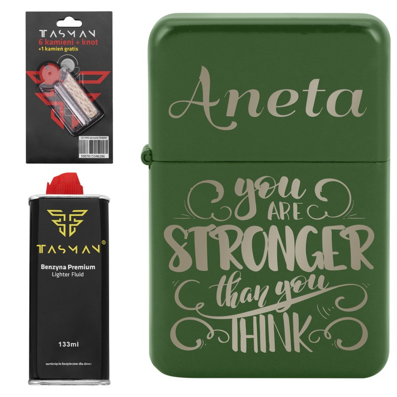 Zapalniczka benzynowa TASMAN - Zielony Mat Grawer/ benzyna / knot / kamienie