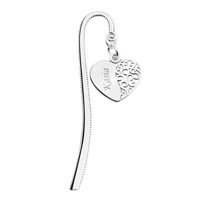Srebrna zakładka do książki 925 serce z ażurową połówką i grawerem