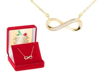 Srebrny Pozłacany Naszyjnik pr. 925 nieskończoność z cyrkoniami z Dedykacją