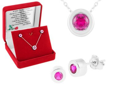 Komplet biżuterii pr. 925 rubinowa cyrkonia DEDYKACJA