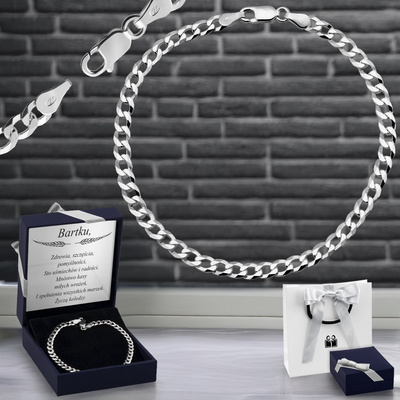 Męska srebrna bransoleta próba 925 pancerka 21 cm Dedykacja