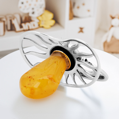 Smoczek z bursztynem pamiątka na chrzest Grawer