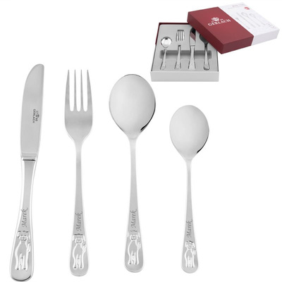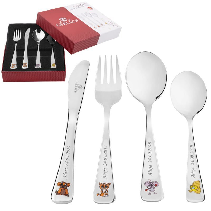 Sztućce Bon Ton Pieski Stal Szlachetna Pamiątka Chrztu z Grawerem