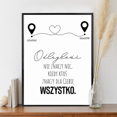 Plakat dla chłopaka dziewczyny / Miłość na odległość / Prezent na walentynki urodziny Dzień Chłopaka / 30x40 cm / szkło