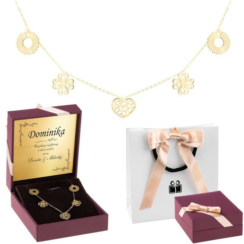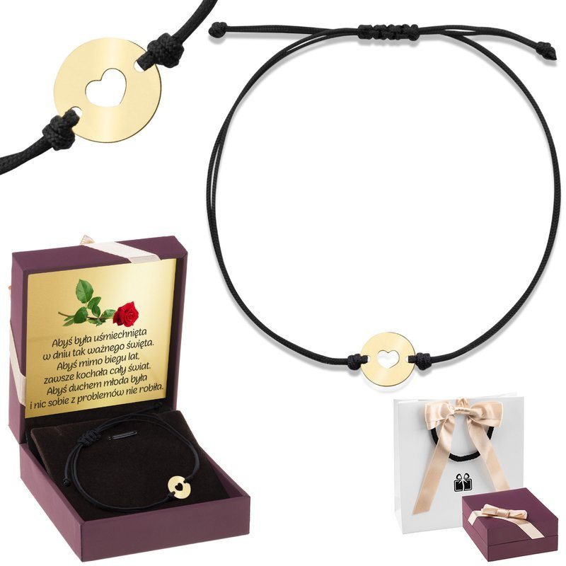 Czarna bransoletka sznurkowa z sercem 585 z dedykacją w pudełku