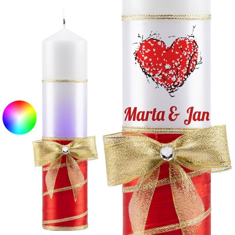 Świeca Premium z inteligentnym podświetleniem na stół czerwono-złota Twój Nadruk
