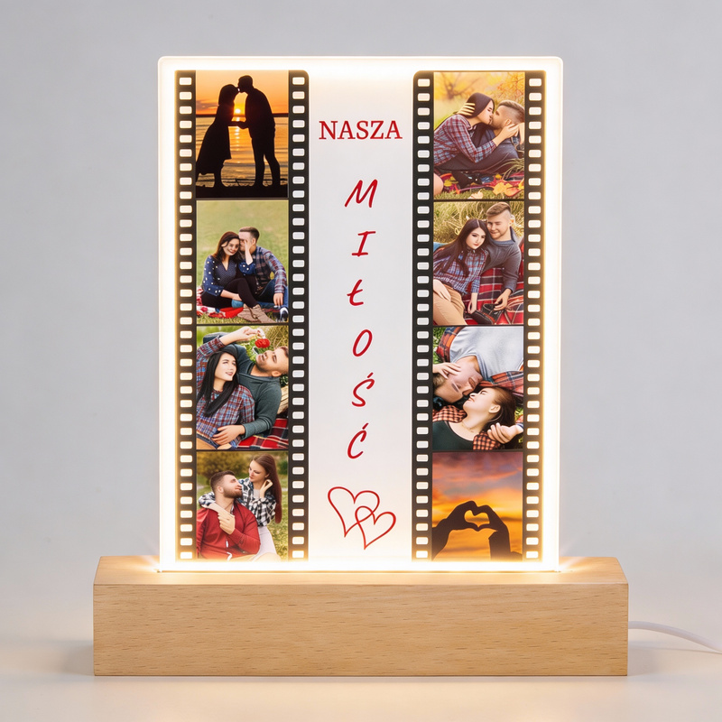 Personalizowana lampka LED „Nasza Miłość” – foto-kolaż na kliszy filmowej