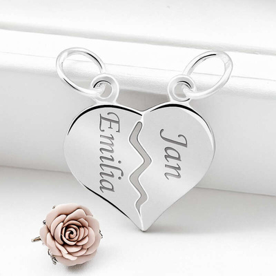 Walentynki: Wisiorek serce łamane 925 z grawerem laserowym