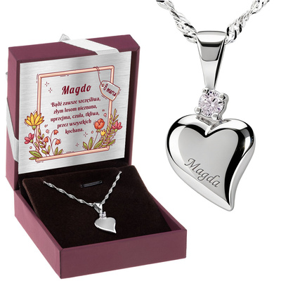 Srebrny naszyjnik serce 925 z cyrkonią i grawerem w pudełku