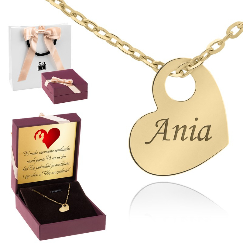 Naszyjnik serce z cyrkoniami – srebro 925 pozłacane, łańcuszek Singapur, Dedykacja