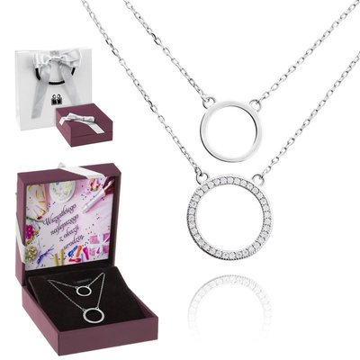 Naszyjnik kółka z cyrkoniami srebro 925 z dedykacją na Komunię