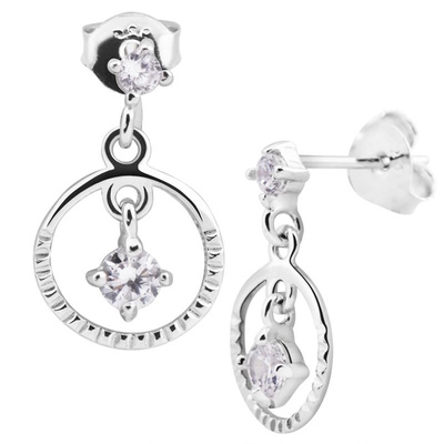 Srebrne kolczyki z zawieszką oraz cyrkonią pr. 925 Prezent z Dedykacją