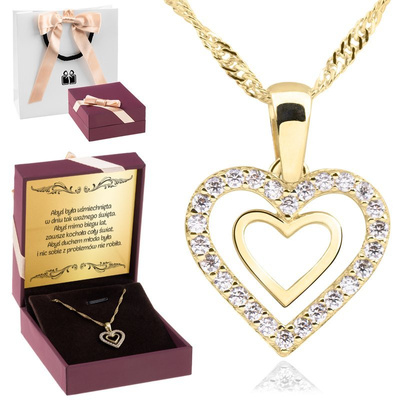 Wisiorek w kształcie serca z cyrkoniami pr. 333 z łańcuszkiem z Dedykacją