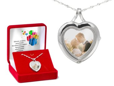 Sekretnik serce pr. 925 na zdjęcie z dedykacją w pudełku