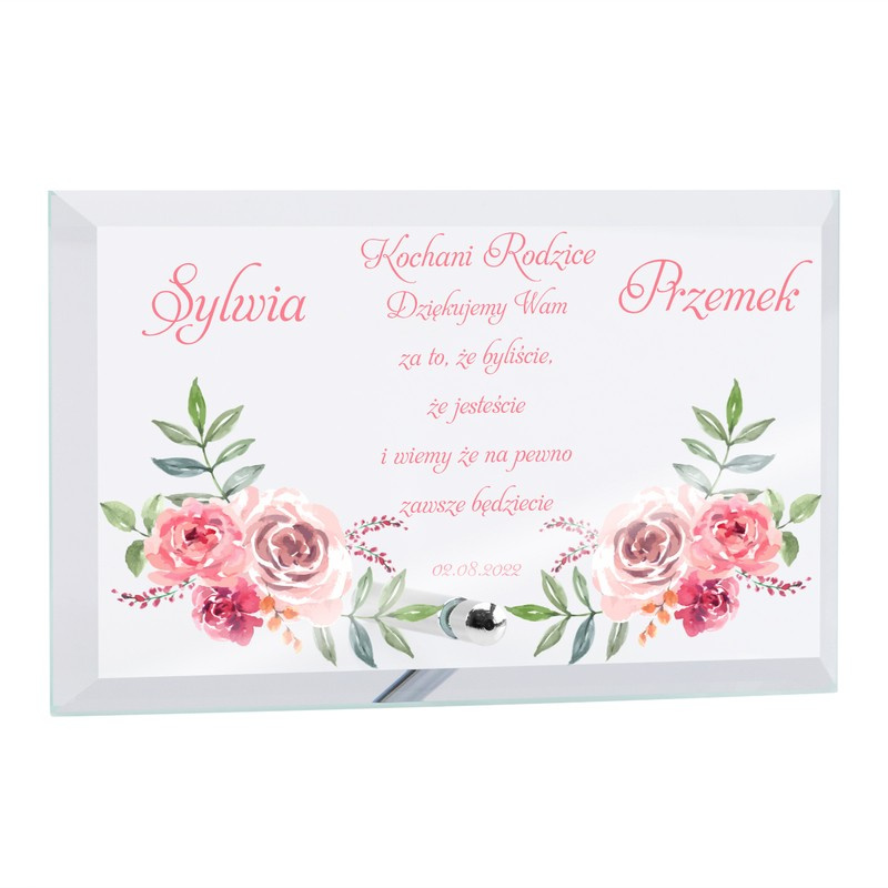 Szklana statuetka z Kolorowym Nadrukiem - Twój indywidualny tekst i grafika na Ślub / Chrzest / Urodziny / Zawody | prostokąt 15.5 cm x 24.5 cm