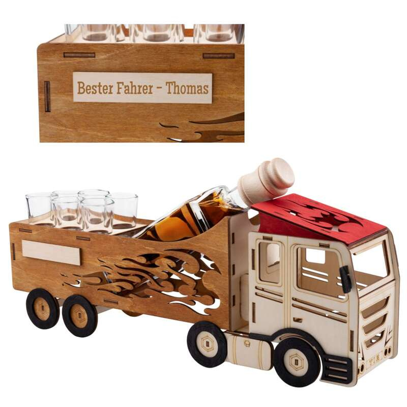 7-teiliges Set Karaffe und Gläser LKW mit Gravur
