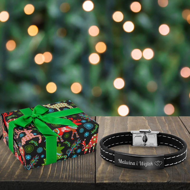 Bransoletka na Święta z kauczuku i stali 316L z grawerem