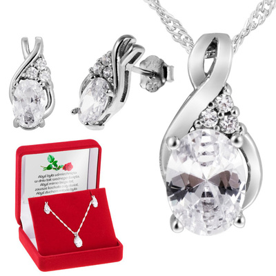 Srebrny komplet pr. 925 elegancka biała cyrkonia Dedykacja