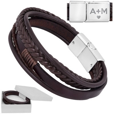 Brązowa bransoletka warkocz z ekoskóry z grawerunkiem dla niego